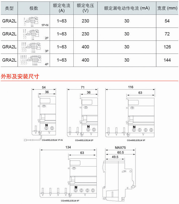 GRA2L系列小型漏电断路器主要适用于交流50Hz/60Hz,额定电压为230V/400V及以 下,额定电流至63A的线路中,具有漏电触电,过载,短路等保护功能。还可根据需要增加 过压、欠压保护功能。主要用于建筑照明和配电系统的保护。