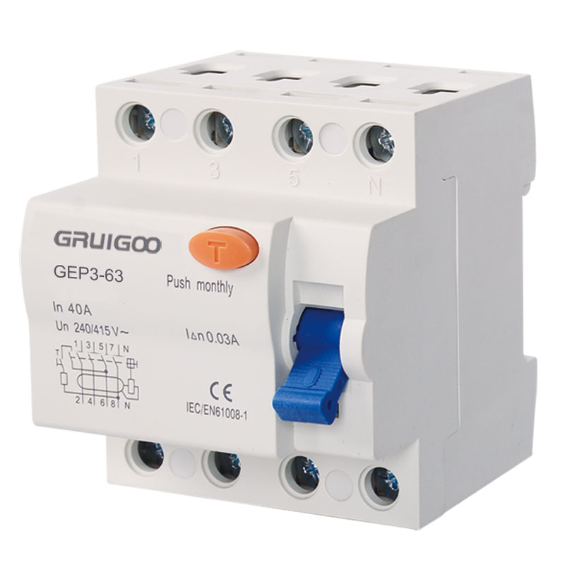 GEP3系列剩余电流动作断路器( 不带过电流保护) 适用于交流50Hz,额定电压两极240V,四极415V,额定电流至63A 线路中,当人身触电或电网泄漏电流超过规定值时,剩余电流动作断路器能在极短的时间内迅速切断故障电源,保护人身及用电设备的安全,亦可作为线路的不频繁转换之用。